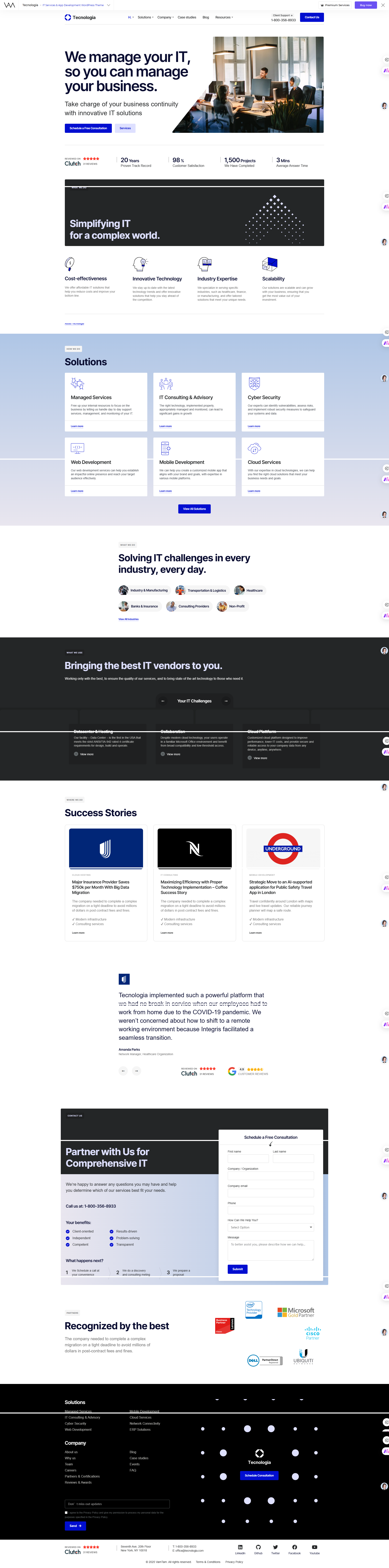 欢迎来到 Tecnologia,一个现代化的 IT 服务和应用开发主题。这款精美的小众主题专为 IT 和软件行业的任何企业打造。主题拥有精心设计的布局,非常适合现代 IT 公司、应用落地页、IT 服务机构、科技初创公司、技术支持以及现代软件公司展示。它适合零编程技能的用户和高级开发人员。