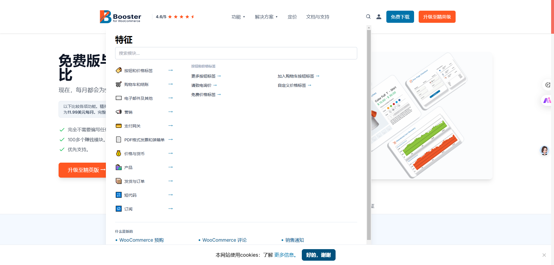 Booster Plus——只需一个插件,而非十几个甚至更多,就能在众多插件中脱颖而出。它能帮助您创建带有品牌标识的专业 WooCommerce PDF 发票和装箱单,从而简化订单处理流程。您可以设置不同货币的商品显示,并自动应用汇率,还可以自定义定价规则。此外,您还可以使用 WooCommerce 产品插件模块来定制产品或创建自动折扣。这款插件确实提供了一套强大的工具包,可用于增强 WooCommerce 网站的功能。它旨在通过提供一系列可根据您的需求定制的功能,简化在线商店的管理流程。