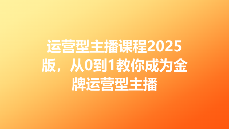 运营型主播课程2025版,从0到1教你成为金牌运营型主播,夸克网盘资源,免费下载。
