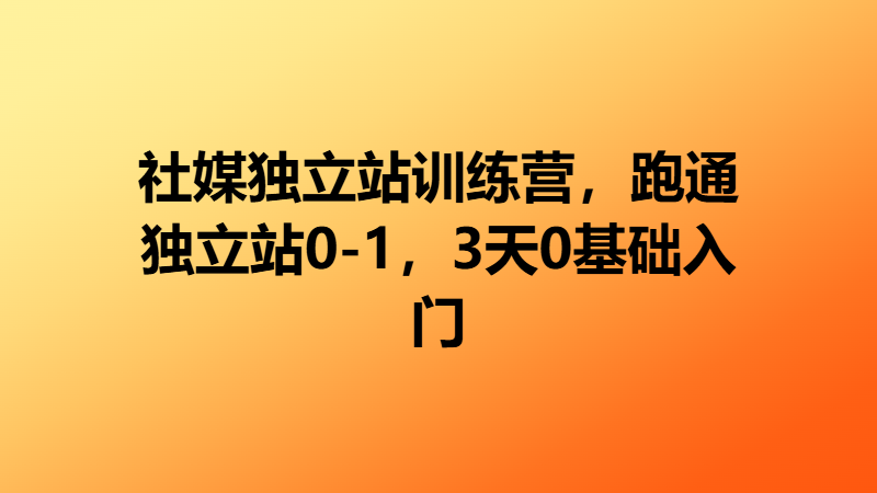 《社媒独立站训练营》是一门为跨境电商新手量身打造的入门训练课程,聚焦如何在3天内跑通“独立站+社媒引流+变现”全链路。课程采用“认知开悟 → 流量获取 → 细节精修”的结构,帮你从0搭建独立站,精通TikTok/YouTube/FB的引流与广告实操,提升转化效率与签收率。