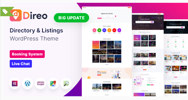 Direo 是一款 WordPress 目录主题,可帮助您构建并盈利完整的目录网站,无论是本地网站还是全球网站。它专为目录和列表业务而设计,响应迅速。这款主题功能强大,让您轻松构建卓越的目录和列表网站。页面采用强大的 Elementor 工具构建,为用户提供极高的灵活性。