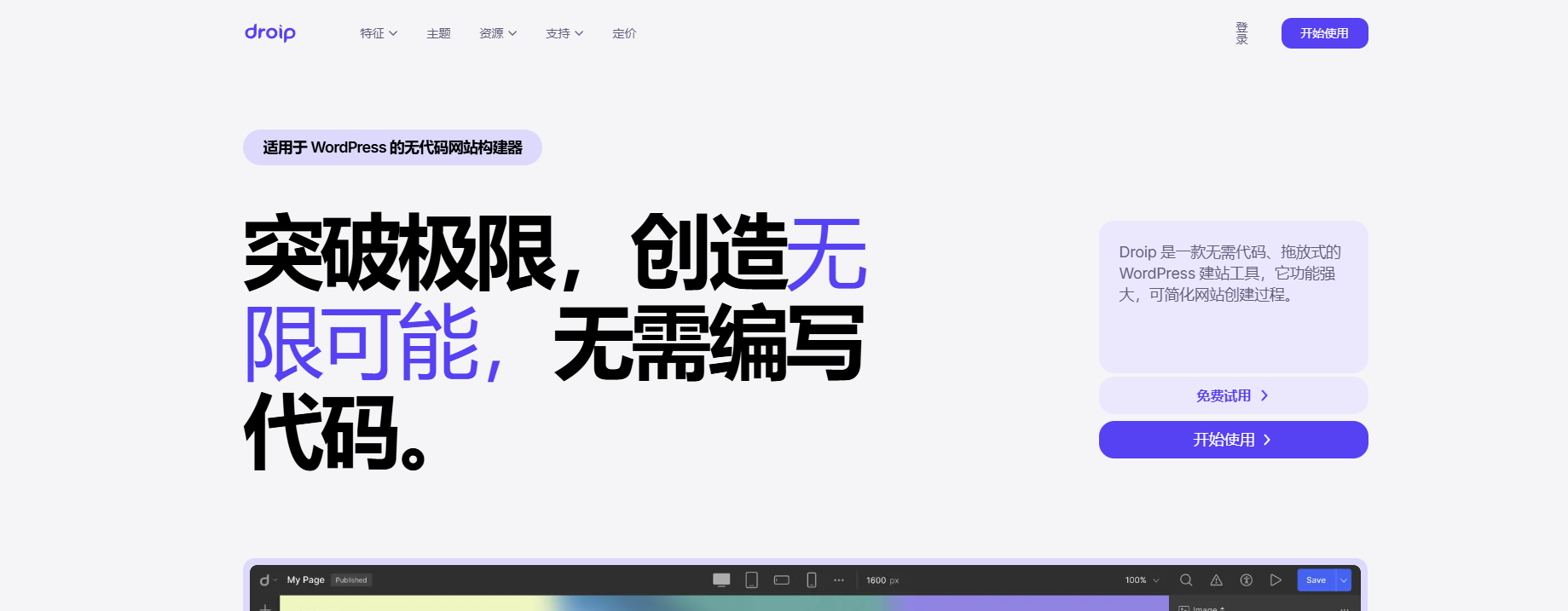 凌一笑资源网 wordpress插件 Droip v2.5.2 – 无需编写代码的 WordPress 网站构建器 https://www.lingyixiao.com/3692.html