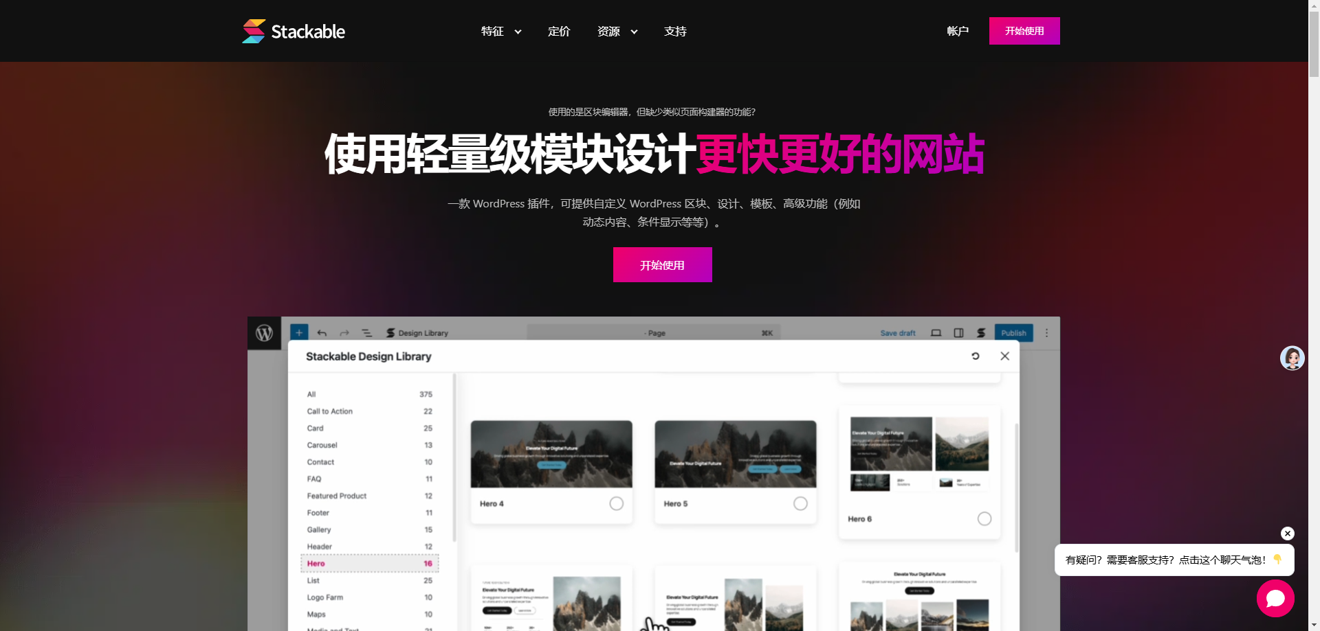 Stackable 让您在 Gutenberg 编辑器中体验页面构建器的强大功能,它拥有精美的可自定义模块和数百种预制设计。
