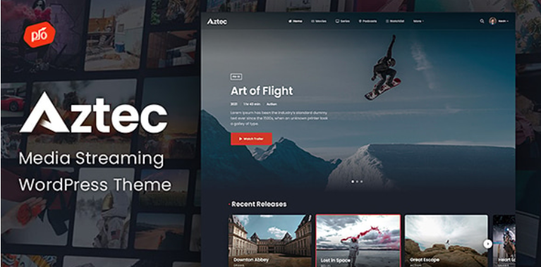 Aztec 是一款易于使用的视频和音频流媒体 WordPress 主题。购买此主题后,您将获得一份详细的帮助文件,以及电子商务会员平台、视频播放器和拖放式页面构建器等高级功能。