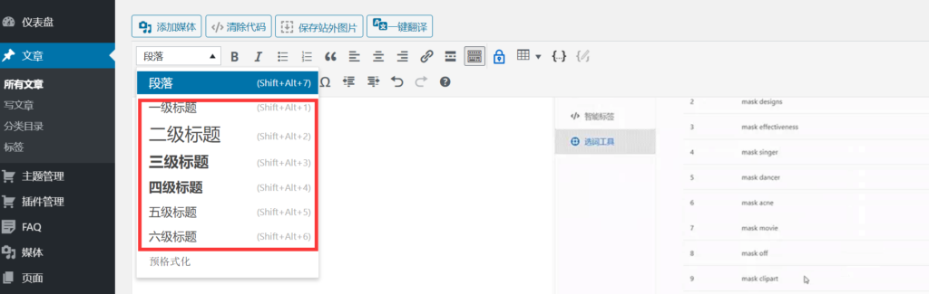 您可以使用可视化编辑器中的下拉列表创建H标题: