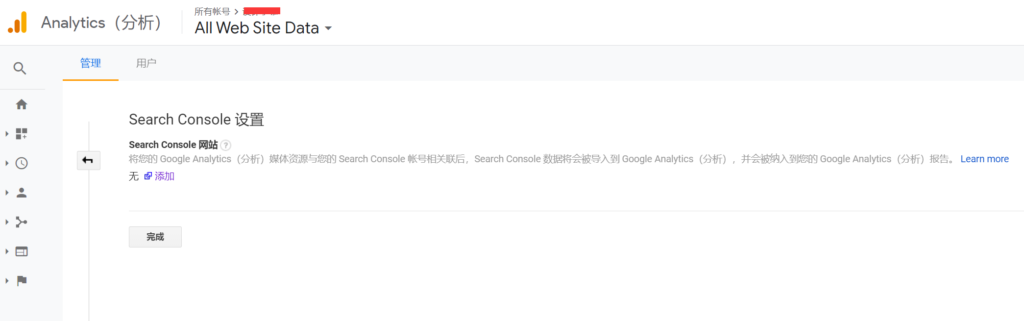 然后,将Google Analytics(分析)帐户设置与Google Search Console帐户相关联。在Google Analytics后台选择对应域名,点击左下角的管理,进入该域名的管理界面点击媒体资源下的“媒体资源设置”,拉到下方找到“Search Console”,安装说明关联即可: