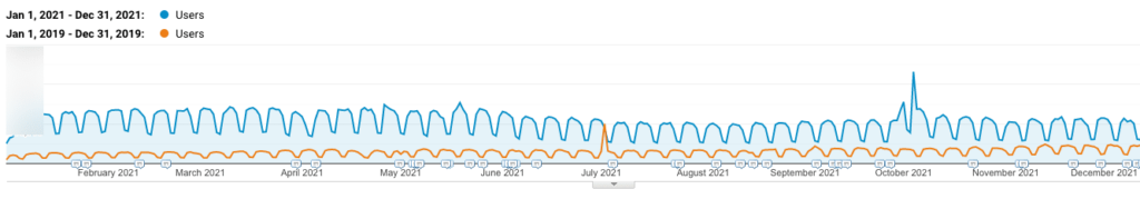 下面的网站流量走势图说明一切。“自然”是指仅来自搜索引擎的流量(不包括社交媒体,付费广告等)。