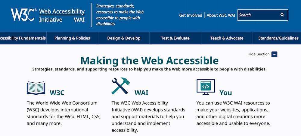 万维网联盟(W3C)网站,网络无障碍倡议组织(Web Accessibility Initiative)的主页。