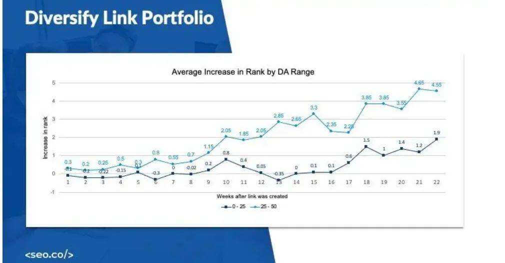 一定要有足够多的高 DA 值网站和低 DA 值网站混合起来!