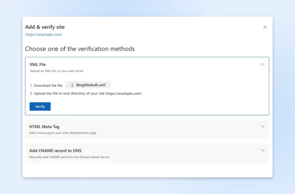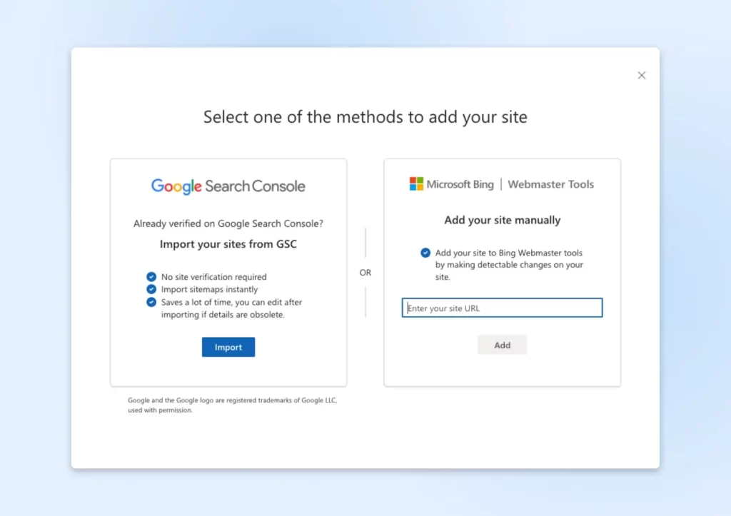 已经在 Google Search Console 中验证了您的网站?你很幸运!Bing 提供简化的导入流程,可为您节省宝贵的设置时间。
