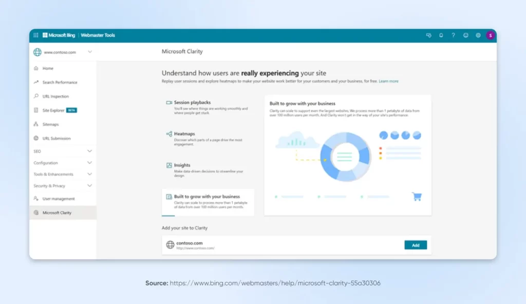 - 与 Microsoft Clarity 集成:必应与 Microsoft Clarity 无缝集成,可进行深入的用户行为分析。