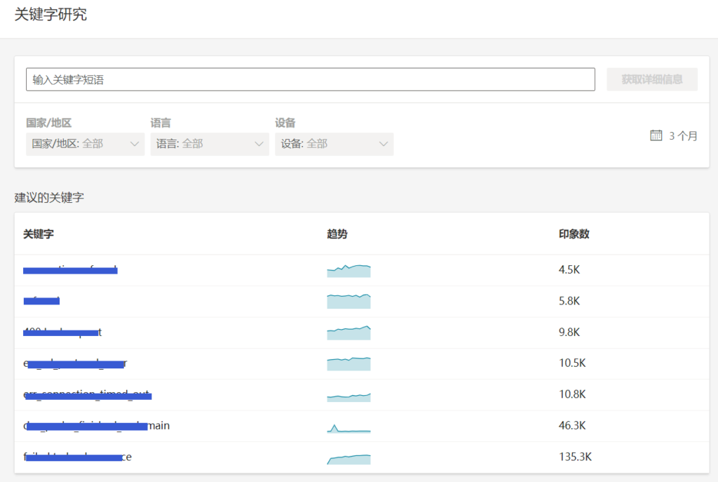 关键字研究工具可帮助您发现新的关键字,并分析它们在必应上的表现。您可以
