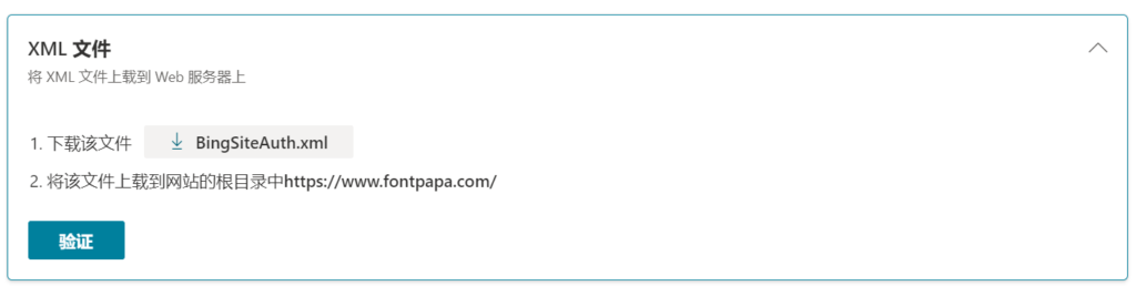 - XML 文件验证:下载必应提供的 XML 文件,并使用 FTP 客户端或虚拟主机控制面板将其上传到网站根目录。